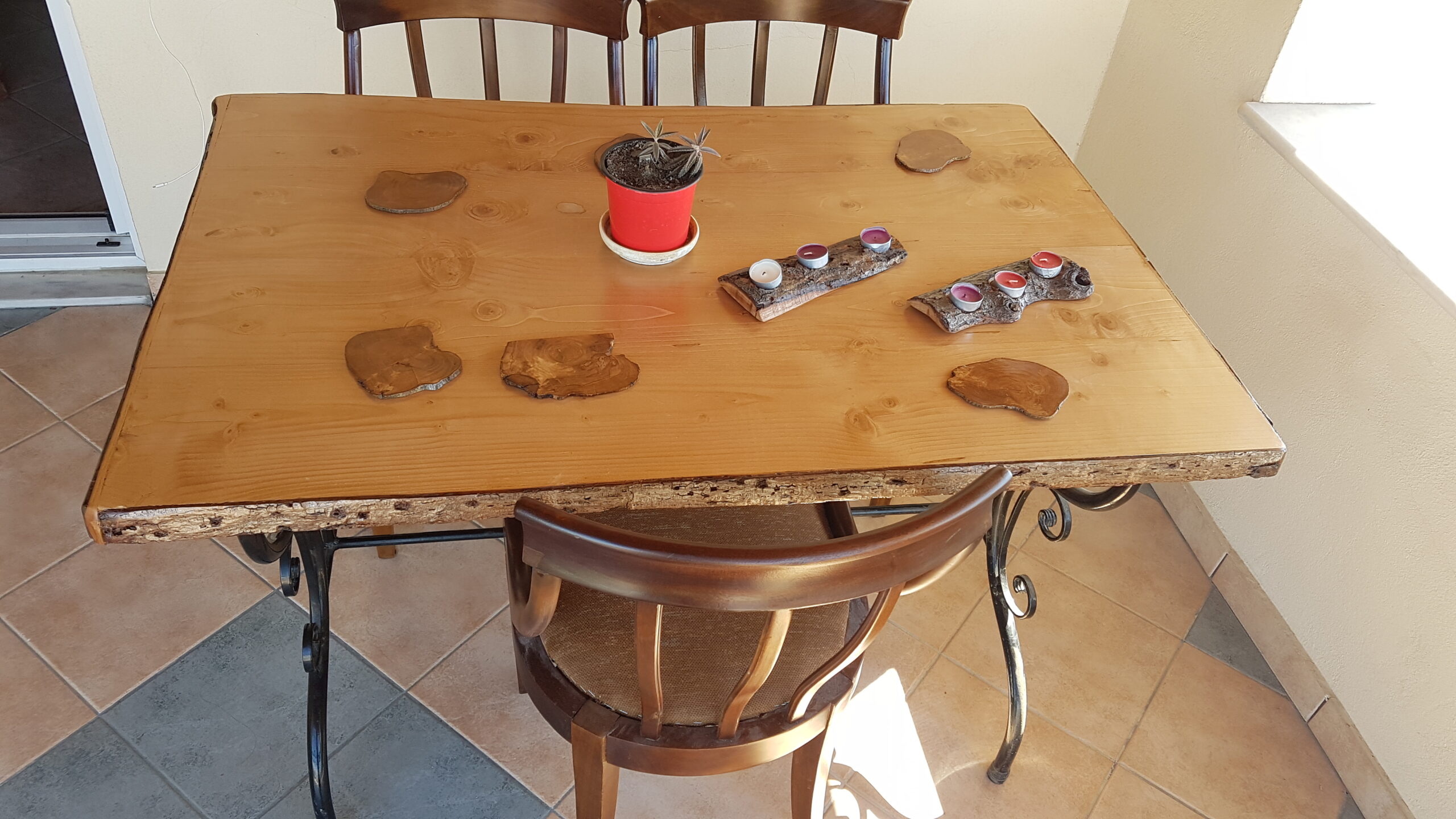 Τραπέζι με ξύλινη τάβλα και σιδερένια βάση